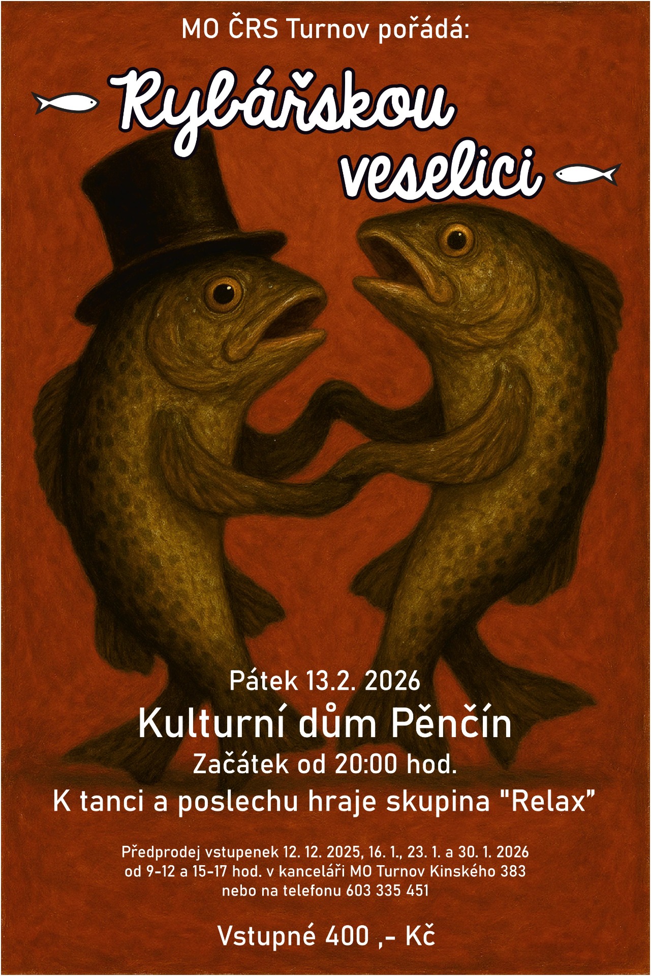 Prodej lístků na rybářský ples: 13.12.2024 v kanceláři MO Turnov, Kinského 383